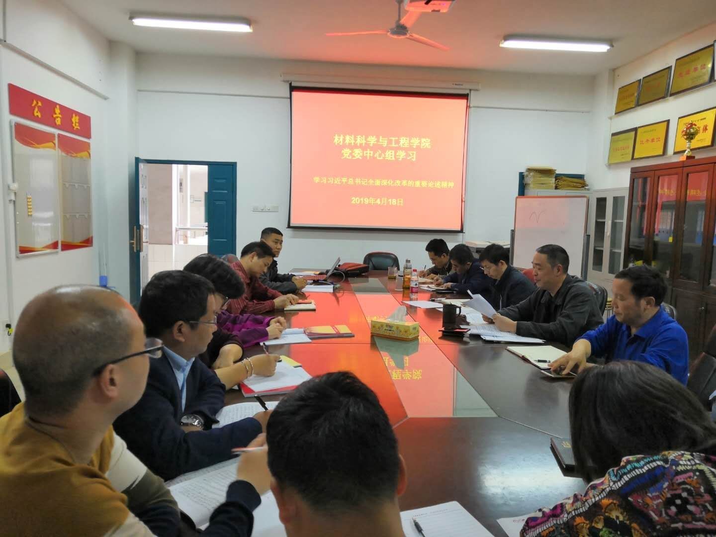 2019年4月18日,学院党委在逸夫楼239会议室 举行了4月份学院党委中心组学习,学院党政班子成员和党支部书记参加了学习。会议由学院党委书记李强主持并作中心发言。
