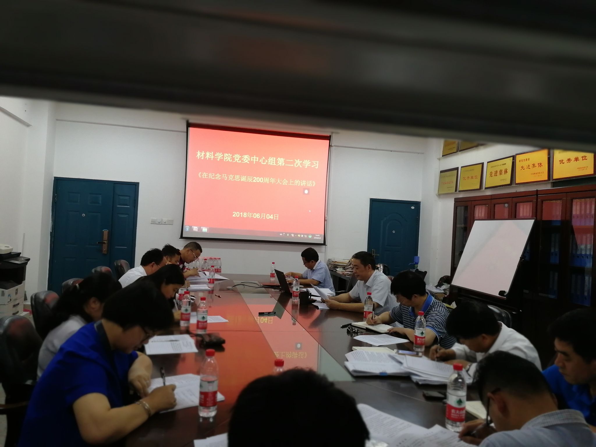 学院党委于2018年6月4日下午在逸夫楼239学院会议室举行了学院党委中心组第二次学习,学院党委成员、教工学生党支部书记参加了中心组学习。主题是学习“习近平在马克思诞辰200周年大会上的讲话”。会上,李强书记带领中心组成员认真学习了《习近平在马克思诞辰200周年大会上的讲话》精神,并组织与会人员从5个方面要点展开了研讨。
