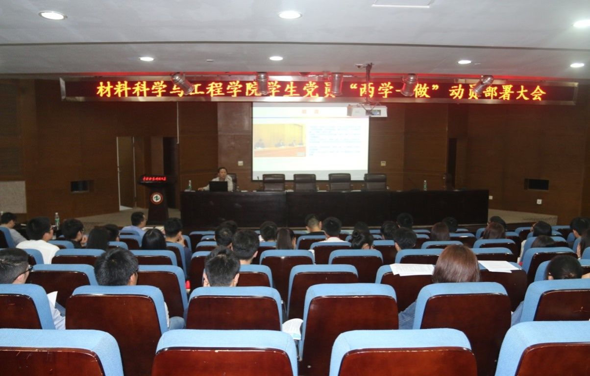 为了响应学校党委开展“两学一做”学习教育工作的号召,巩固拓展党的群众路线教育实践活动和“三严三实”专题教育成果,进一步解决学生党员队伍在思想、组织、作风、纪律等方面存在的问题,保持发展党的先进性和纯洁性,我院于5月24日下午4:00在图书馆报告厅召开了材料科学与工程学院学生党员“两学一做”动员部署大会,我院党委书记张仕吉、党委副书记乔建政、辅导员张哲、李伟坡、成璐,全体学生党员