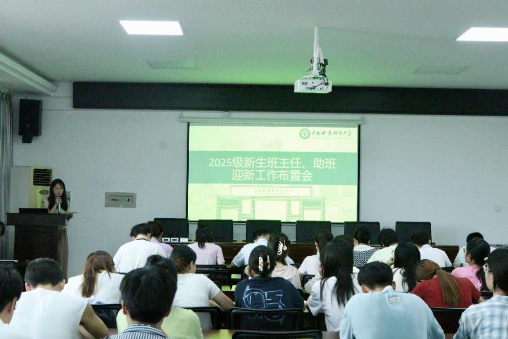 为保障迎新工作高效顺畅,学院提前启动筹备,将关怀落细于每个环节:8月12日线上家长会如期开展,老师们围绕专业培养、校园服务、入学准备详解家长关切,并实时答疑新生适应、学业规划等问题,让各地家长安心托付;8.10-9.10期间,学院分6次开展宿舍维修及整改情况核查,学院领导与新生辅导员共同走访宿舍、完善布置,为同学们筑牢舒适居住基础;9月8日班主任、助班与军训教官召开迎新动员会,明确分工、凝聚共识;9月9日工作人员培训会聚焦报到流程、应急处理开展专项指导,提升服务专业度;9月10日志愿者培训会逐项讲解接待礼仪、路线指引,确保服务精准暖心;9月11日学生干部全力布置迎新会场,从展板搭建到物资摆放,用巧思营造热烈温馨氛围。