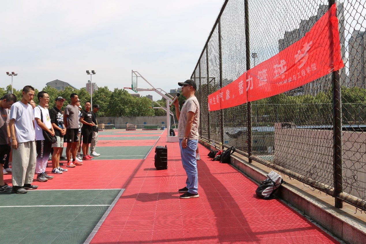 9月24日中午,由我院体育部承办的“材生新气象——蓄力篮球梦“篮球赛在西园篮球场火热开幕。参加本次开幕式的有辅导员李斯、材料学院第十四届团委学生会部分成员、裁判队以及参赛的各篮球队队员,本次开幕式由体育部部长李佳奇主持。
