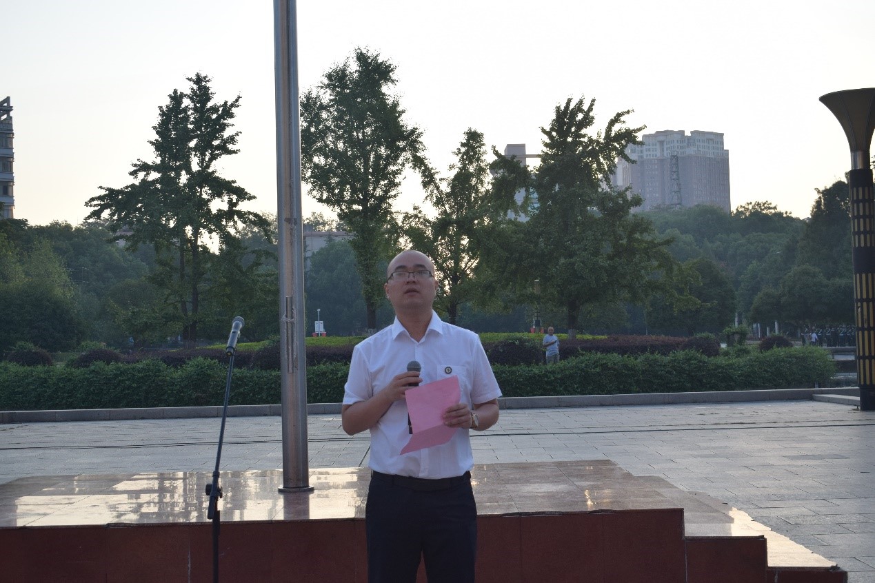 9月30日上午6点45分,为庆祝中华人民共和国成立七十周年,我院于图书馆前坪举行“我和我的祖国”系列活动启动仪式。院党委书记李强、院长李贤军、院党委副书记莫家明、学工办各辅导员、学生党建工作办公室全体成员、全体学生党员、第十四届团委学生会副部及以上、19级新生助理班主任、19级本科生、19级研究生近八百人参加本次活动,仪式由院团委书记李斯主持。
