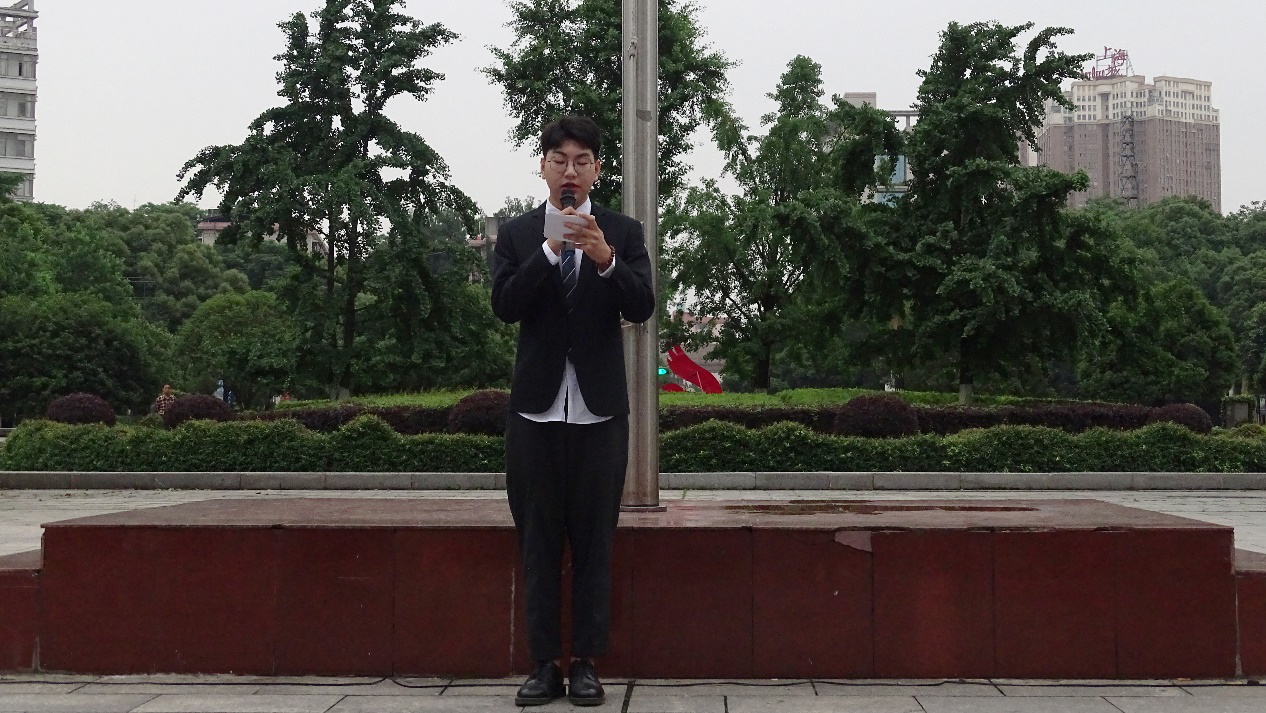5月20日上午,我院“我的中国梦”主题升旗仪式暨“青春闪光”晨读、晨练打卡活动启动仪式在东园图书馆前坪举行,校学生工作部副部长李健林、校学生工作部学生科科长齐一天、材料科学与工程院长李贤军教授、党委副书记莫家明、辅导员老师李斯、成璐、张哲、王艳辉、方青、全体党员及发展对象、第十三届团委学生会成员、2018级全体同学参加了本次活动,杨纯懿担任本次活动的主持人。