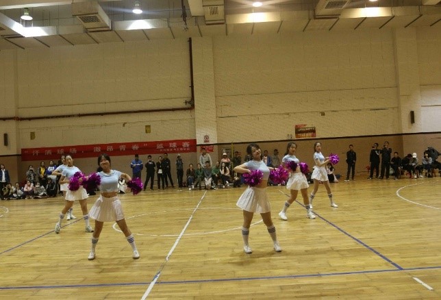 中场休息时,由团委学生会组织的啦啦队给球员送来鼓励。她们伴随着轻快的旋律,在欢呼声中旋转跳跃,绽放最美丽的舞姿,用富有激情的舞蹈为球员们加油打气。