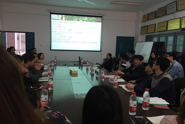 学术报告会之前袁光明教授简要介绍了万辉博士的基本情况,随后万辉博士就近年来在林产品和林产工业方面开展的研究工作,重点介绍了林产品教育、林业产业现状、未来林产品工业发展趋势。