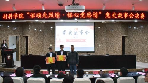 11月25日晚,材料学院“讴颂先烈绩·铭心党恩情”党史故事会决赛于图书馆报告厅如期举行。学校党委组织部副部长兼党校副校长赵培瑞、纪委办公室、监察处副处级纪检员王静、校党委宣传部副部长张胜利、院党委副书记莫家明和学院各党支部书记出席了活动,由赵培瑞、王静、张胜利和莫家明四位老师担任本次大赛的评委;学院全体学生党员和第61期入党积极分子培训班学员观看了比赛。本次比赛由罗涵予主持。