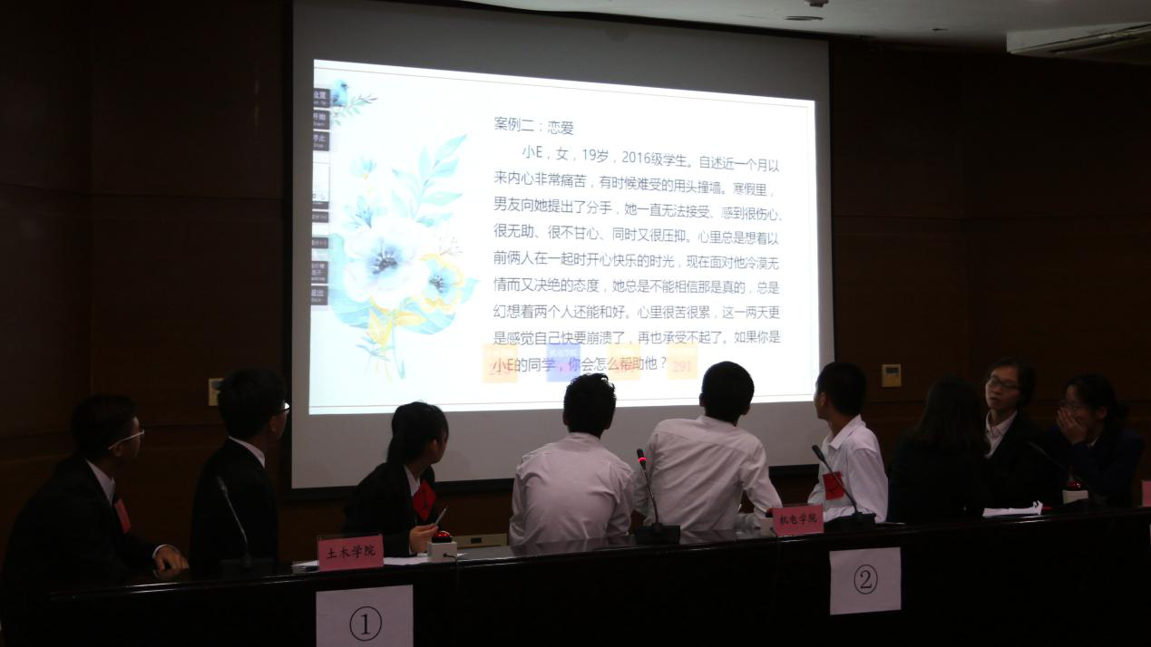 5月29日晚,由中南林业科技大学学工部心理中心主办,我院和家具艺术与设计学院联合承办的首届心理健康知识竞赛决赛,在图书馆报告厅成功举行。出席本次决赛的嘉宾有校学工部副部长徐见,我院党委副书记莫家明,校心理中心老师张珊明、罗匡,物流学院心育员老师吴小璇,生命科学与工程学院心育员老师孙林琳,环境科学与工程学院心育员老师邓楠,我院心育员老师张婷,家具艺术与设计学院心育员梁智娇,以及各学院心育员老师。
