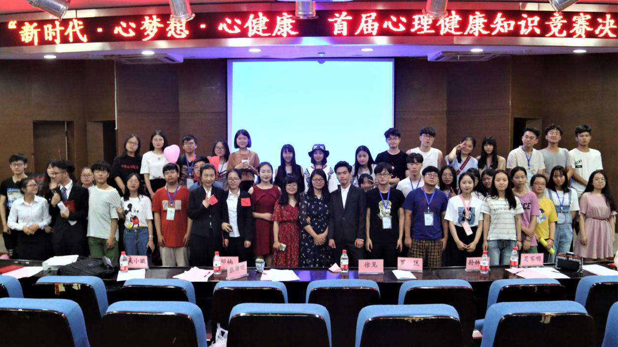 最后,现场的工作人员与评委老师及部分参赛选手一起合影留念。至此,本次心理健康知识竞赛决赛圆满结束。