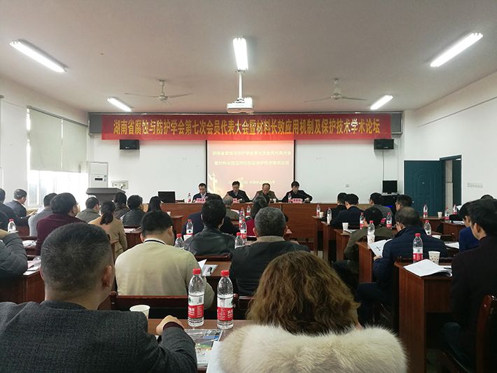2018年3月3日,湖南省腐蚀与防护学会第七次会员代表大会暨材料长效应用机制及保护技术论坛在中南林业科技大学逸夫楼隆重召开。来自全省各高校、科研院所、相关企业的80多名理事、专家及会员代表参会。