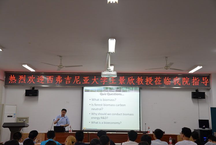 6月30日下午,林业工程学科和我院其他相关学科教师、研究生和高年级本科学生共80余人,参加了王景欣教授的学术讲座——Biomass to High Value Bioproducts(从生物质原料制备高价值生物质产品),王教授介绍了上述相关领域的研究进展、发展动态以及其本人的研究成果,并进行了互动交流,让同学们开阔了眼界、拓宽了专业知识面,老师们也收获颇多。报告会由学院副院长袁光明教授主持,林化学科的李湘洲教授等教师参加。