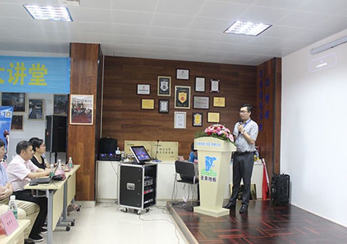 会议伊始,由圣象地板句容有限公司常务副总经理肖树彬先生致辞。他首先对圣象大国工匠项目组的到来表示热烈的欢迎和衷心的感谢。他希望通过此次为期半个月的企业实训真正实现产教融合,切实提升每一位同学的专业技能,并表示工厂将全力支持与配合此次项目的开展,实现校企文化的深入交流从而培养出更多具有工匠精神的复合型应用人才,为中国林业产业领域内培养更多出色的“匠人”!