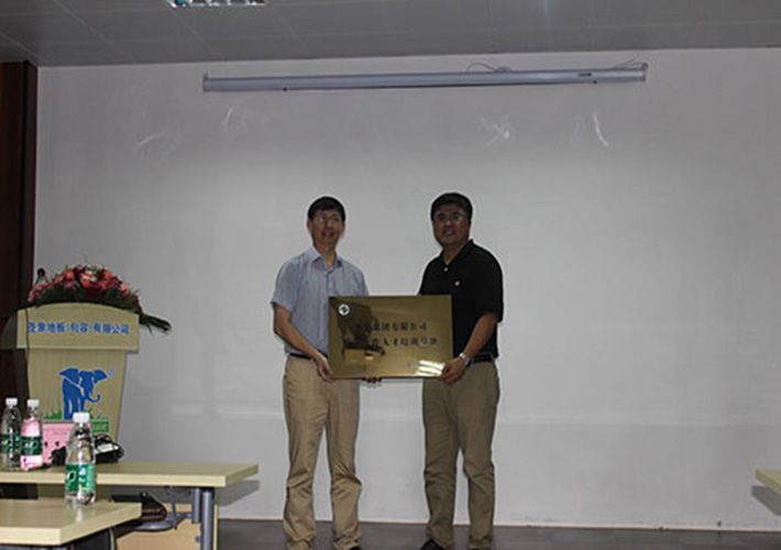 领导致辞结束后,圣象集团有限公司和中南林科技大学相互颁发“中南林业科技大学校企合作大学生实训教育基地”、“圣象集团校企合作人才培养基地”牌匾,同时,圣象集团有限公司为李贤军院长颁发“圣象管理学院特聘教授”的聘书。