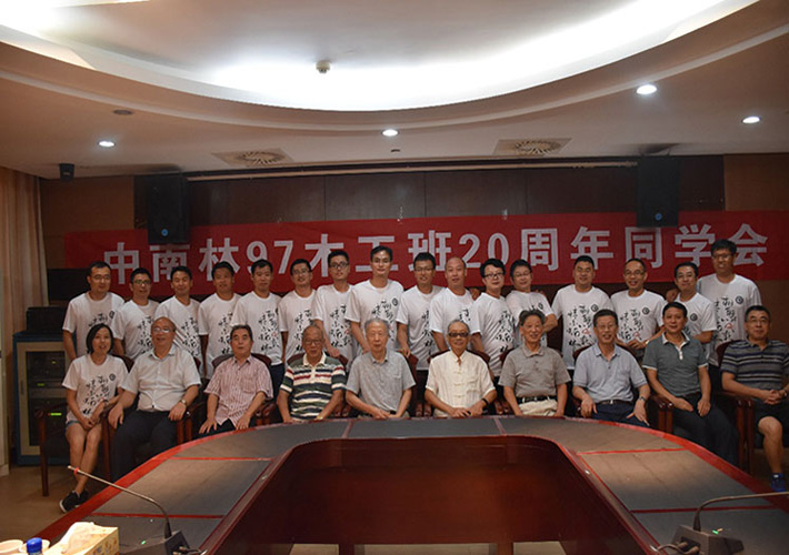 8月26日至27日,97级木工班18位校友从祖国四面八方荣归母校举行20周年同学会,学校副校长吴义强出席同学会。校友们先后参观了长沙校区美丽的校园、逸夫楼实验室和木材标本馆,并回株洲校区校园参观,追忆往事。
