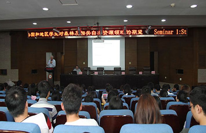 下午,Terry Sharik教授、Andrew Storer教授、Hairong Wei教授、谢新峰教授在图书馆报告厅为我校师生作了精彩的学术讲座。我校师生200余人听取了此次讲座。讲座共为三个主题,分别是世界各国和地区学生对森林及相关自然资源领域的期望、密西根理工大学林业和相关学科教学和科研概况和密西根州森林生物质材料研究所介绍。讲座中,Terry Sharik教授等还与在场师生就留学申请条件、国外林业相关专业培养方式、密西根理工大学科研方向等问题进行了交流。讲座内容丰富、讲解生动、启发性强,与会师生受益匪浅。