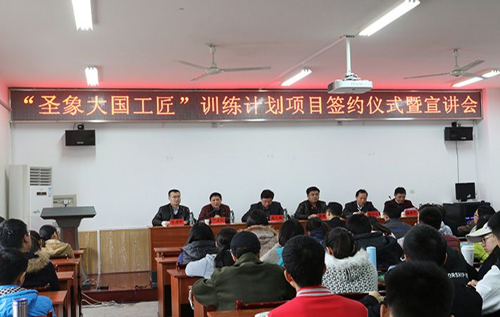 吴义强代表学校致辞衷心感谢圣象集团长期对学校人才培养的支持,双方已成为优秀合作伙伴。他表示此次“大国工匠”人才培养项目班的设立开创了学校本科教学和专业教育改革的一个先例,他指出“大国工匠”是一种回归与呼唤,人才培养的质量是学校存在的生命线,能够推动产业的发展,进而推动国家的进步与富强,“大国工匠”班将充分利用企业和学校的资源,提高人才培养质量。他要求学员们秉承“工匠精神”细心、严谨、认真、持之以恒、坚韧不拔,学习进步,将中南林精神、圣象精神发扬光大,将来能够走出国门,走向世界。