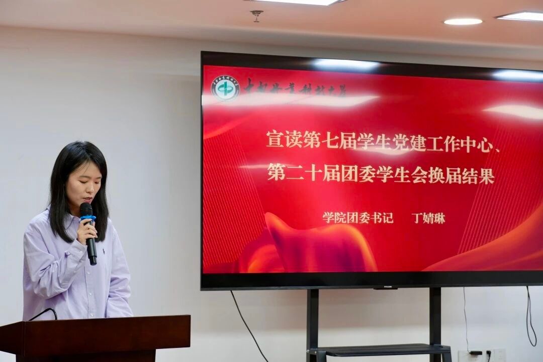 丁婧琳宣读了第七届学生党建工作中心、第二十届团委学生会换届结果。青春当志存高远,韶华应不负盛世。在主持人的带领下,全体党建工作中心及团委学生会成员进行了庄严的就职宣誓,誓言铮铮,铿锵有力,彰显出材院学子的坚定信念和卓越风采。