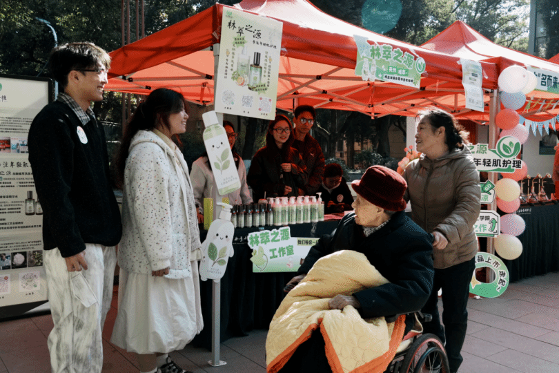 林萃团队带来了自研品牌林萃之源龙脑植萃系列产品,吸引众多同学驻足试用并下单。产品借其独特的冰凉感和植物配方,成功收获了首批校园顾客的喜爱。