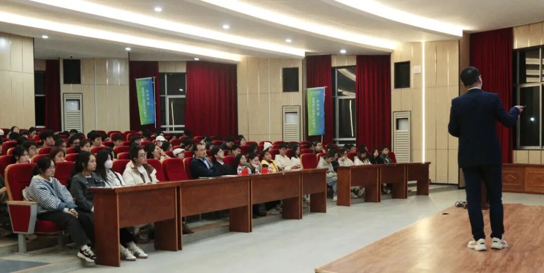 学院特邀胡孙跃作题为“最懂家具的智电专家”专题报告。他结合自身创业历程,系统回顾了公司自2013年创立以来的发展路径,包括2015年3月首次参加中国(广州)国际家具博览会,逐步获得红点设计奖、iF设计奖及IDEA奖等重要国际奖项,并成功拓展了海外市场的珍贵创新创业心得。重点展示了企业在智能空间领域的创新成果,如集成预约、刷脸签到、无级调光等多功能于一体的智慧图书馆系统,以及可应用于嘈杂环境的智能静音仓等自主设计与落地的产品。此外,他还对智慧教室、智慧宿舍等集成化智能解决方案进行了详细的介绍,其兼具前瞻性与实用性的分享,有效激发了同学们的创新思维与实践热情。
