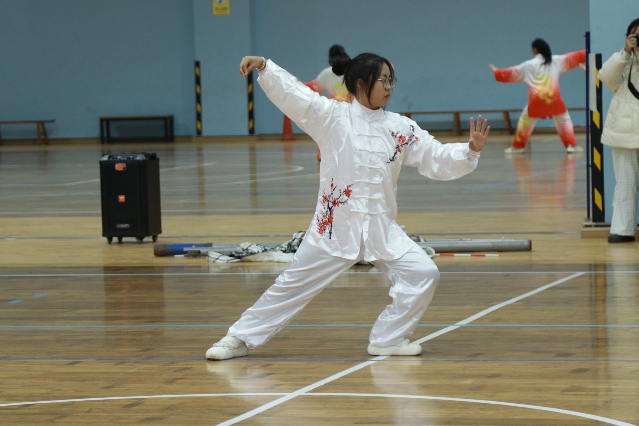 个人赛场上群英荟萃,材能学院选手们举手投足间尽显扎实功底。无论是舒缓绵长的动作演绎,还是刚劲有力的招式转换,都精准传递着太极的文化底蕴与魅力,展现出大学生对传统武术的深刻理解与热爱传承。每一个精准的动作,每一次专注的眼神,都是对自我的挑战,更是对太极文化的致敬。