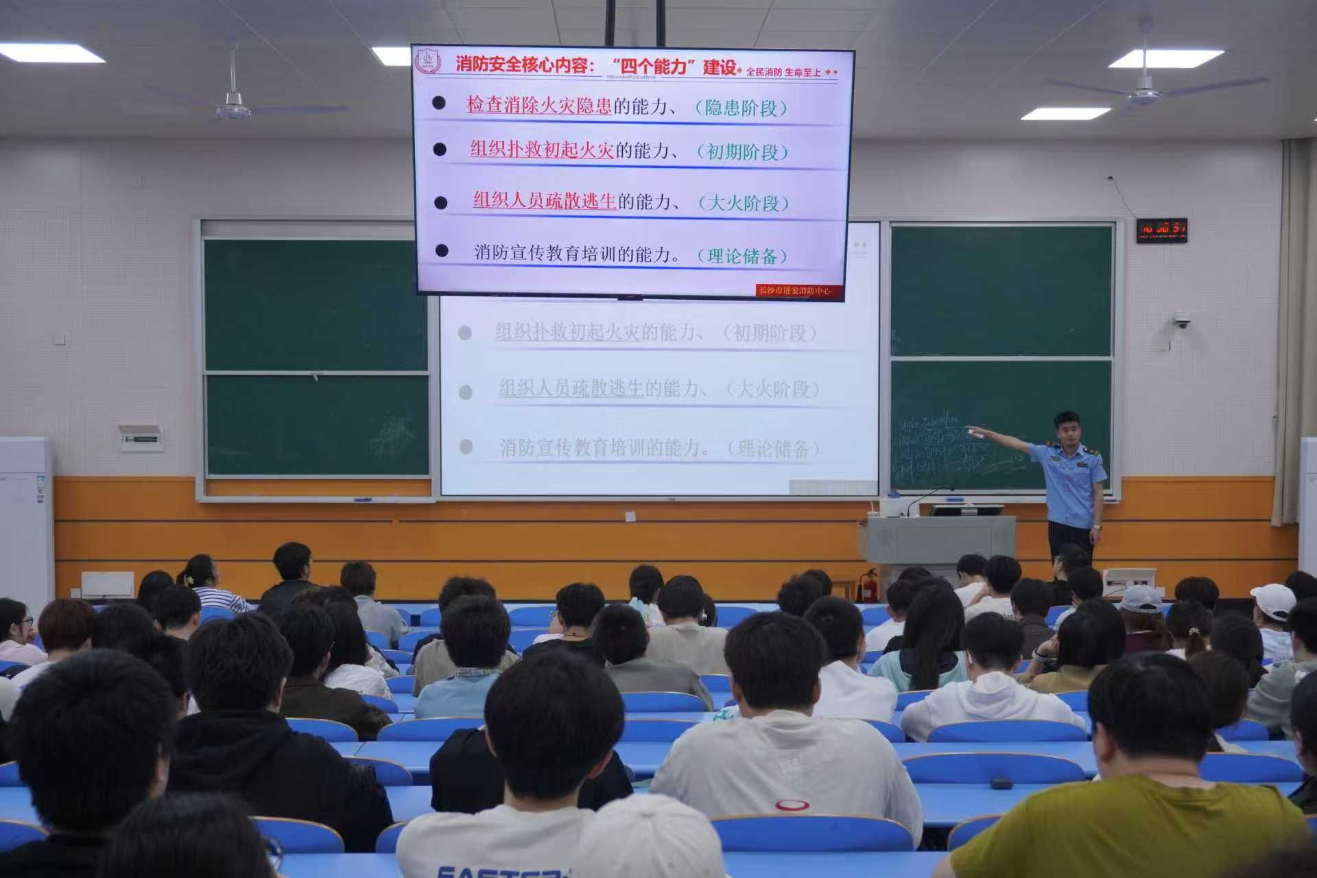 4月10日晚,我院2025-2026学年春季学期宿舍消防安全专题培训在树木楼003教室顺利举行。本次培训特邀进安消防中心彭教官担任主讲,叶猛超老师主持,各年级本科生、研究生寝室长参加活动。培训旨在切实增强学生宿舍消防安全意识,提升火灾防范与应急处置能力,筑牢校园安全防线。