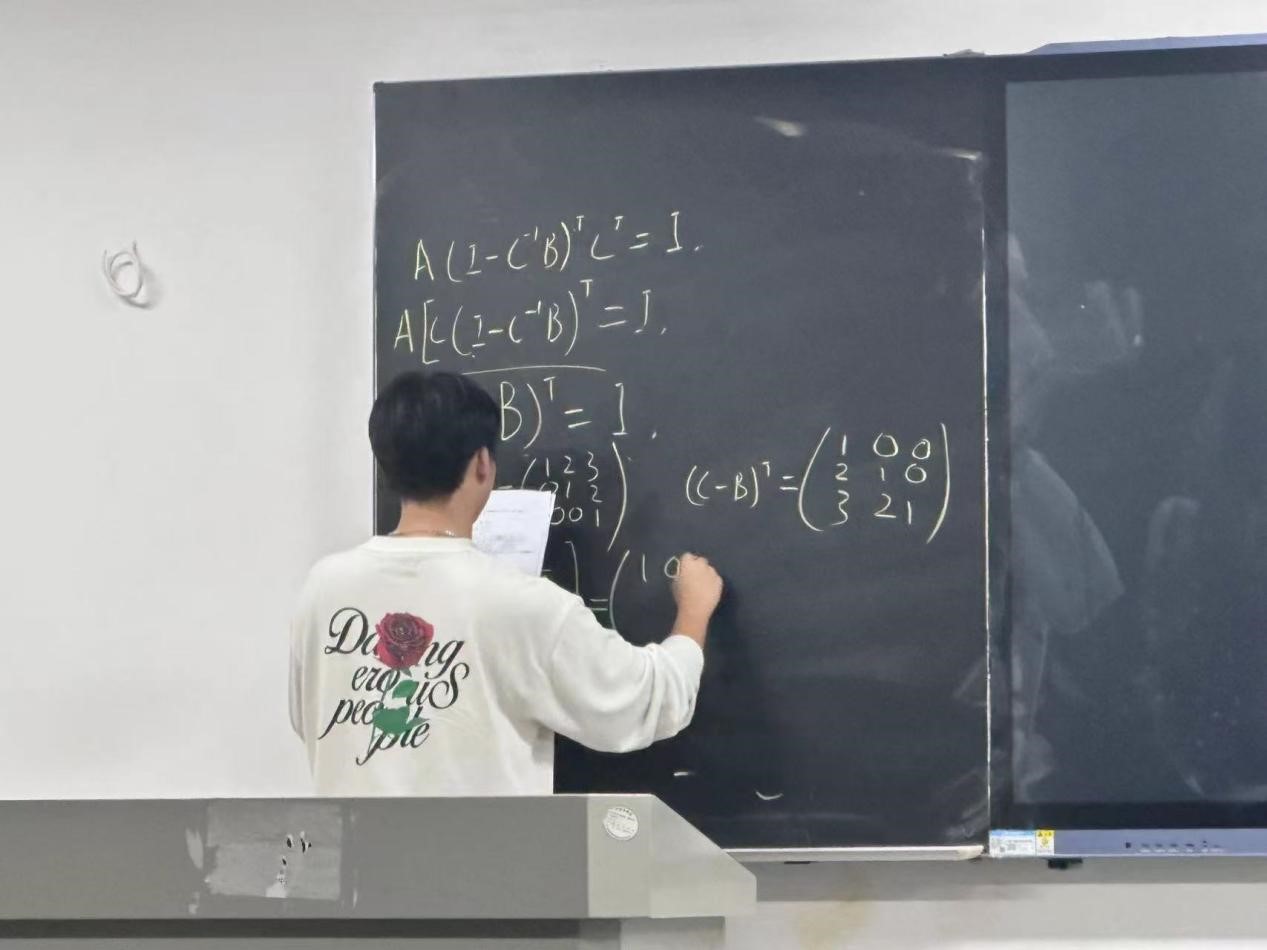 由23级高分子材料与工程2班高艳雷和李杰同学主讲线性代数,他们现场演示解题方法和技巧,并将知识点有条理地向同学讲解,帮助同学们更好地复习和应对考试。