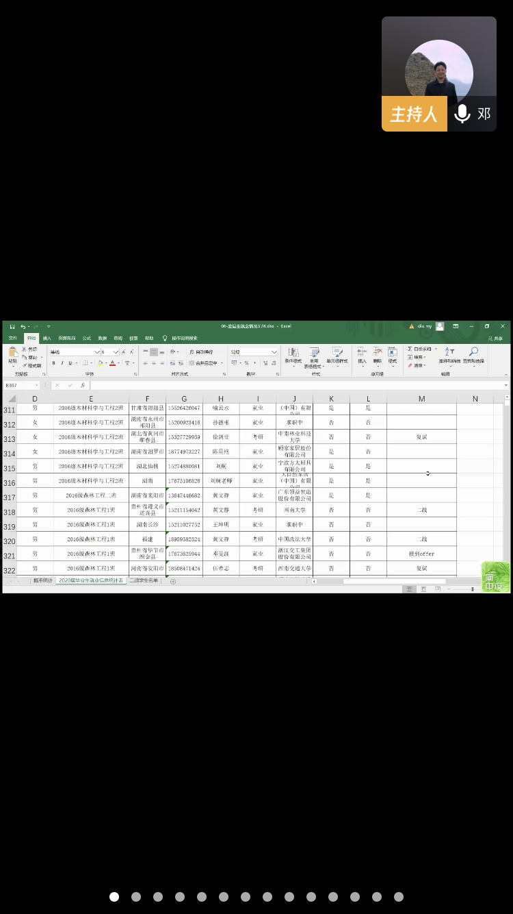 为进一步落实学校4月1日就业工作推进会的会议精神和学院3月25日面对全院领导及教职工召开的就业工作会的部署及要求,4月7日至8日,材料学院采用网络视频会议的方式分专业召开了2020届毕业生就业工作推进会,学院班子成员,各专业教研室教师,全体毕业生及部分校友企业代表参加了会议。会议由各教研室主任主持。