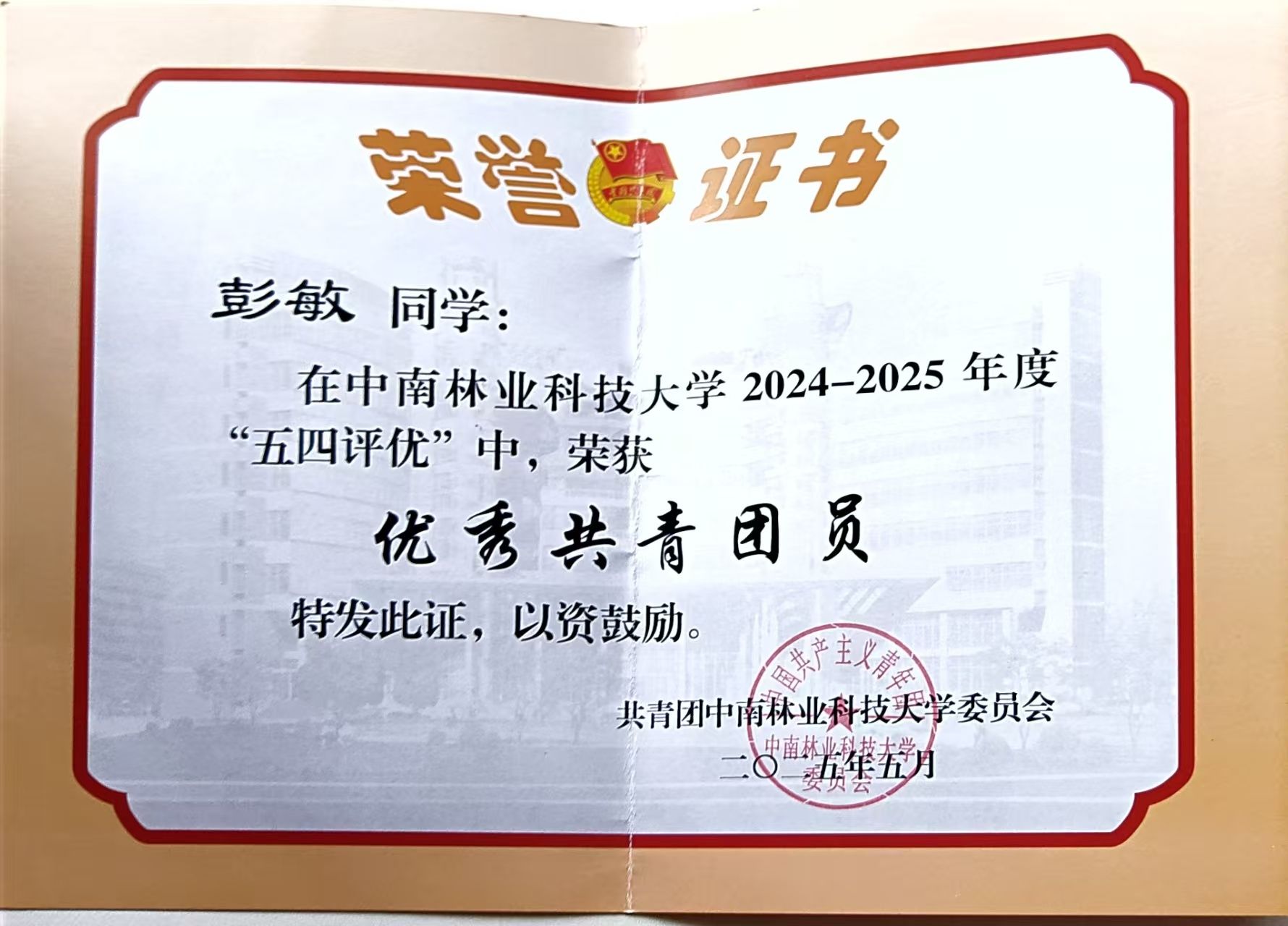 “为学正如撑上船,一篙不可放缓。”入学以来,彭敏始终把学习放在首位,课堂上专注记录课堂笔记,课后主动梳理实验数据,遇到不懂的问题及时向老师请教。大二学年,她以86.04分的平均成绩稳居专业第四、班级第三。同时利用课余时间备考,顺利获得英语四级、普通话证书,用扎实的积累筑牢学业根基。