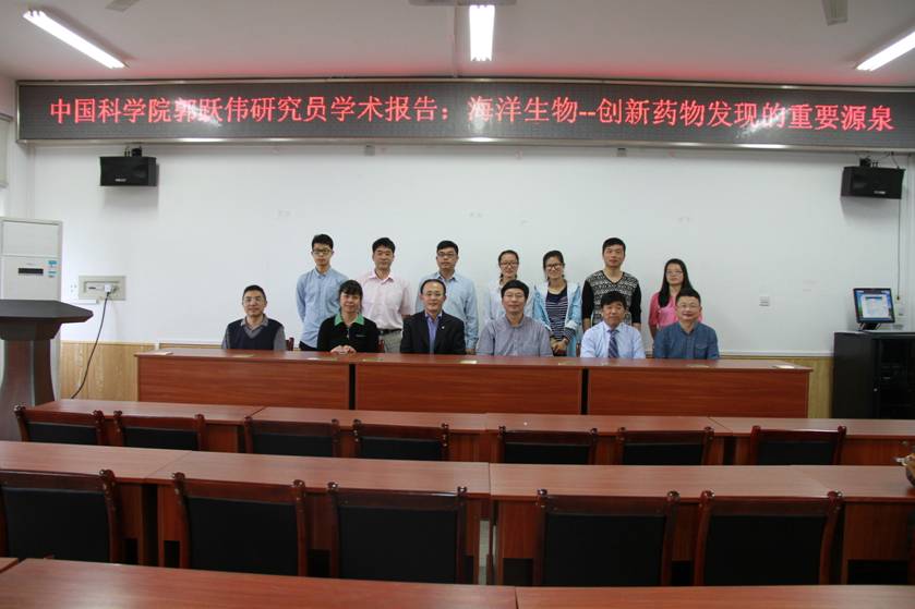 随后,郭跃伟研究员就《海洋生物--创新药物发现的重要源泉》作了精彩的学术报告。我校林产化学加工工程、化学工程与工艺等专业相关老师与研究生积极参与,并踊跃提问、热烈交流。下午,双方还就林业生物质提取、利用等方面进行了经验交流与探讨,并达成研究生联合招收培养等深入合作的意向。