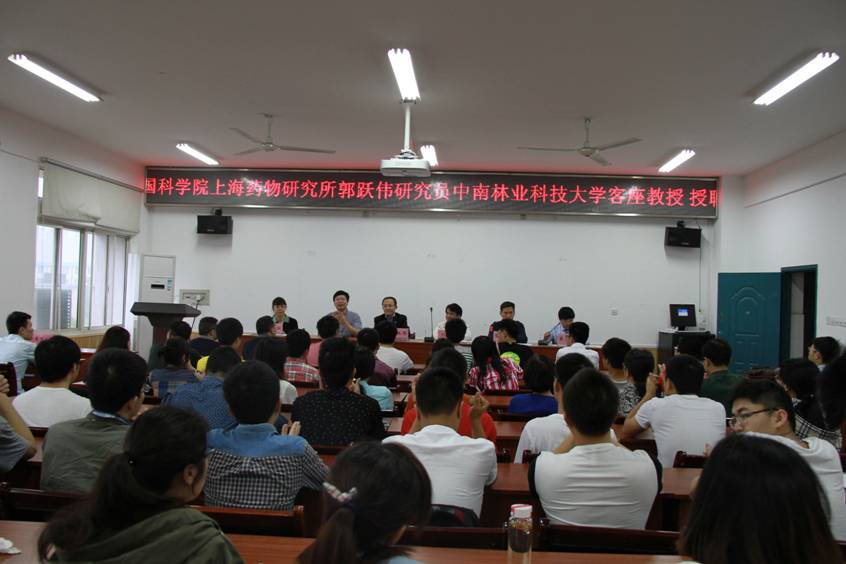 2015年5月4日,应材料科学与工程学院、林产化学加工工程国家林业局和湖南省重点学科的邀请,中国科学院上海药物研究所郭跃伟研究员受聘我校客座教授并作学术报告。