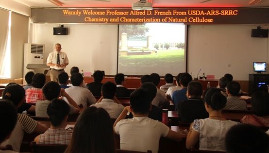 2015年5月24日上午,应材料科学与工程学院、木材科学与技术重点学科和林业工程湖南省重点学科的邀请,美国农业部Alfred D.French教授来我校进行学术交流并作学术报告。报告会在逸夫楼540进行,袁光明副院长主持报告会。学院相关领导、老师和学生近百余人参加报告会。