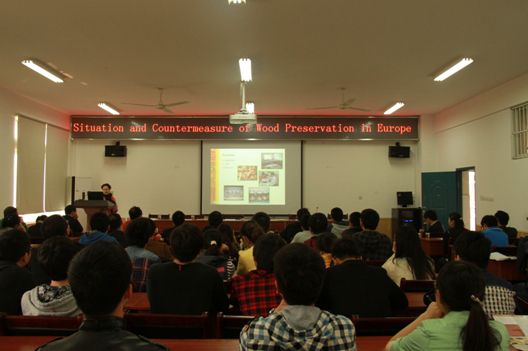 仪式后,特维农博士做了精彩的学术报告,结合自身科研实例,围绕欧洲木材保护技术,进行了深入浅出地阐述,尤其是木材保护实验室质量认证体系引起了师生们的浓厚兴趣,并进行了热烈互动。