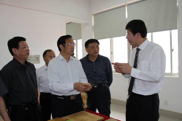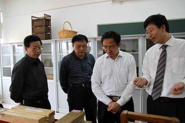 5月16日上午,湖南省政协副主席龚建明一行,在学校党委书记章怀云、副书记曾思齐、副校长任湘郴、副校级督导蔡玉梅及相关部门负责人的陪同下,来到我院木材科学与技术国家重点学科的木材干燥室、木材显微构造室、木材阻燃实验室、木材标本室、生物质材料产品陈列室等视察指导。材料科学与工程学院院长、木材科学与技术国家重点学科带头人吴义强教授详细讲解了每个实验室进行的理论研究、技术开发、产品研发等情况。龚副主席了解到中南林业科技大学木材科学与技术国家重点学科为林木定向培育、木竹藤资源、农作物秸秆等生物质资源高附加值利用长期坚持木材、竹藤材、农作物秸秆等解剖构造基础研究时,对于第一线科研人员和教师耐得住寂寞和清贫科学态度进行了高度肯定。参观完具有50多年收藏史、中南地区规模最大、品种齐全的木竹藤材标本馆时,龚副主席欣然提笔写下了“应努力把木材标本馆建成国家级木材知识的科普基地”。走进生物质产品陈列馆时,吴义强教授还向龚副主席分别介绍了获得国家科技进步二等奖的无烟不燃木基复合材料产品、应用于汽车内饰件的环境友好、高附加值竹纤维增强复合材料产品以及由稻草、麦秆、麻杆、棉花杆、玉米杆等农作物秸杆制备能广泛应用于家具、地板、建筑装饰的无胶人造板产品,龚副主席高度评价和肯定了木材科学与技术国家重点学科对于推动湖南林产工业的发展和科技进步、服务区域经济建设特别是增加农民收入、扩大就业,促进“四化两型”社会建设所做出的巨大贡献。