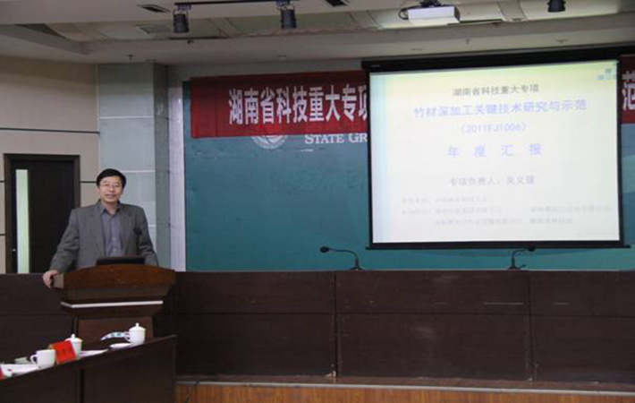 2012年12月10日湖南省科技重大专项“竹材深加工关键技术研究与示范”2012年度汇报会在湖南桃江召开。中南林业科技大学、湖南恒盾集团公司、湖南桃花江实业有限公司、益阳桃花江竹业有限公司以及湖南省林科院等单位的项目组成员、研究生代表共计34人参加了会议。中国工程院张齐生院士、中南林业科技大学赵仁杰教授应邀出席了会议。
