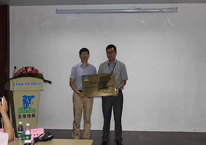 领导致辞结束后,圣象集团有限公司和中南林科技大学相互颁发“中南林业科技大学校企合作大学生实训教育基地”、“圣象集团校企合作人才培养基地”牌匾,同时,圣象集团有限公司为李贤军院长颁发“圣象管理学院特聘教授”的聘书。