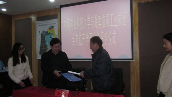 1226,我校与经国务院备案的省级开发区、全省新型工业化产业示范基地湖南临湘工业园区的全方位产学研合作正式启动,签约暨共同揭牌仪式在湖南临湘工业园区管理委员会会议室隆重举行,我校曹福祥副校长,材料科学与工程学院张仕吉书记、吴志平副院长,临湘市委黄俊钧书记、陈卓懿副市长,临湘工业园区管委会谢继川主任及全体工作人员,园区企业负责人,学院相关专业教师等40余人出席了启动仪式。