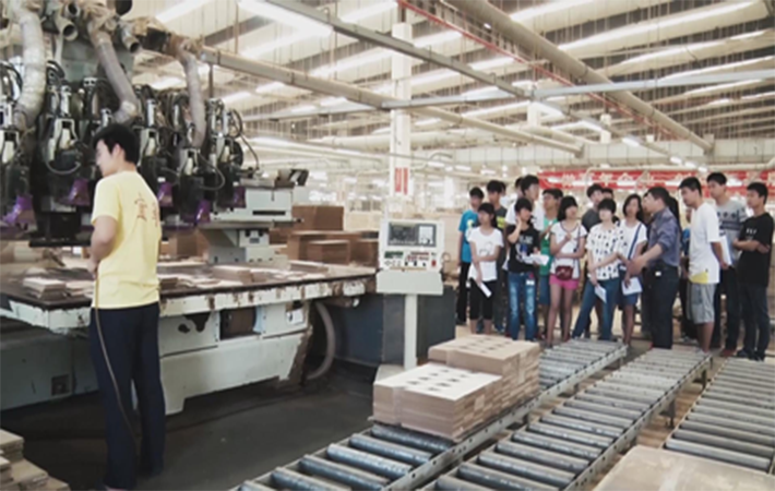 实习伊始,企业负责人和老师给同学们作了“入厂安全教育”,明确了实习任务和实习要求,企业技术专家结合企业生产线工艺流程向同学们讲解了专业理论知识。接下来同学们分成6组,先后深入木地板、家具生产车间,认真聆听老师和专家的讲解,详细了解生产的每一个环节,认真做笔记、拍照,不时向老师和专家探讨。通过实习同学们对木制品生产工艺和流程有了充分的了解,对木材专业的发展有了全面的认识。