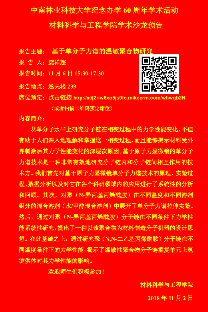 报告主题: 基于单分子力谱的温敏聚合物研究