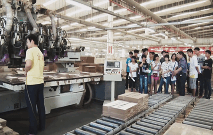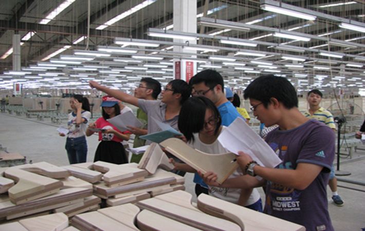 实习伊始,企业负责人和老师给同学们作了“入厂安全教育”,明确了实习任务和实习要求,企业技术专家结合企业生产线工艺流程向同学们讲解了专业理论知识。接下来同学们分成6组,先后深入木地板、家具生产车间,认真聆听老师和专家的讲解,详细了解生产的每一个环节,认真做笔记、拍照,不时向老师和专家探讨。通过实习同学们对木制品生产工艺和流程有了充分的了解,对木材专业的发展有了全面的认识。