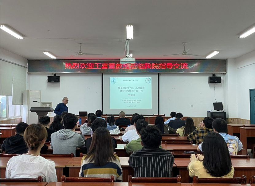 5月23日南京大学王喜章教授应我校邀请于上午9点在逸夫楼540会议室为我院师生作主题为“碳基纳米管/笼:高性能能量存储与转换平台材料”的学术讲座,本次报告会由我院副院长卿彦教授主持。报告正式开始前,卿院长介绍了王喜章教授的主要学术成就,相关学科的教师、研究生以及部分本科生参加了本次报告会。